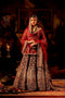 | DESCRIPTION | Maroon Velvet Lehenga with peach Dupatta set is embroidered Resham, cut dana and zardozi work with gold. Paired with embellished blouse and net dupatta. |