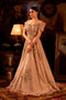 DESCRIPTION | Blush pink gown with cape is embellished with sequence, resham and cut dana. Paired with sequin embellished cape. |