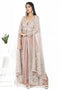 An intricately embellish at tunic with french knot, aari works and cut dana Highlight pearls, sequin and stone. Paired it up with flare sharara which give a contemporary look with pink rose tint.