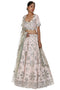 DESCRIPTION | Blush pink lehenga is embroidered gotta work all over the lehenga with grid pattern. Highlight crystalized fringes, cut dana and mirror. Paired with embellished blouse and dupatta |