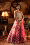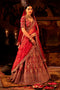 DESCRIPTION | Bright red Lehenga set is embroidered with Zardozi, resham, dori and gota. Paired with embellished scallop dupatta and belt. |