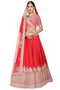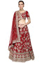 DESCRIPTION | Deep red lehenga set is embellished with zardozi, threads work, stone and french knot. Paired with embellished lehenga and dupatta. |
