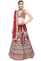 DESCRIPTION | Maroon lehenga set is embellished threads work, zardozi, gotta patti and bead. Paired with embellished lehenga and dupatta. |
