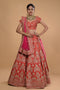 | DESCRIPTION | Wine and pink velvet lehenga set is embellished with mirror,cut dana, pearls and sequin. Paired with embellished dupatta and blouse. |