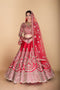 DESCRIPTION | Dusty brown lehenga set is embellished with cut dana, sequin and gota patti. Paired with embroidered wing sleeve blouse and dupatta. |