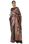DESCRIPTION | Indigo black pre-stitched saree embellished with dabka and zardozi. Highlight with stone. Paired with sequin blouse and cape. |
