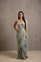 DESCRIPTION | Light pink saree featuring a blouse crafted from net fabric and a saree made from imported lycra. The intricate detailing includes delicate pearl and zarcan work. |