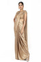 An intricately raw georgette with hand works of resham golden thread. Highlight geometerical diagonal border with embroidery design.Embroidery and FabricsEmbroidery with resham golden thread