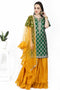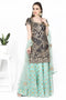 DESCRIPTION | Champagne peach sharara hand embroidered of gota patti with thread reverence of flora on raw silk with chanderi silk sharara simple border and crepe dupatta. |