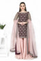 Preach Pink classic chikankari tunic embellished with sequin, cut dana,beads and pearls. Paired it with moti works and scallop bored at sharara and dupatta.