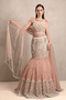 DESCRIPTION | Brown mermaid lehenga crafted from net fabric, adorned with cut Dana, sequence, beads stone, and zarcan work. |