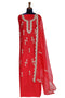 | DESCRIPTION | Wine unstitched set embroidered with light golden thread brocade with motifs. Paired it with embellished dupatta and bottom. |