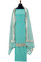 | DESCRIPTION | Light blue unstitched set is embellished with stone and beads. Paired with embellished dupatta and bottom. |
