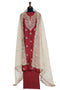 | DESCRIPTION | Maroon unstitched set is embellished zardozi and pearls. Paired with printed dupatta and bottom. |