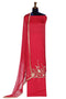 Rose Red Unstitched set embroidered with kantha. Highlight with hand embroidered kutch work on dupatta to enchance the set. Paired it with dupatta and lower.