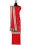| DESCRIPTION | Vermilion red unstitched set is zardozi, sequin and threads. Paired with embellished dupatta and bottom. |